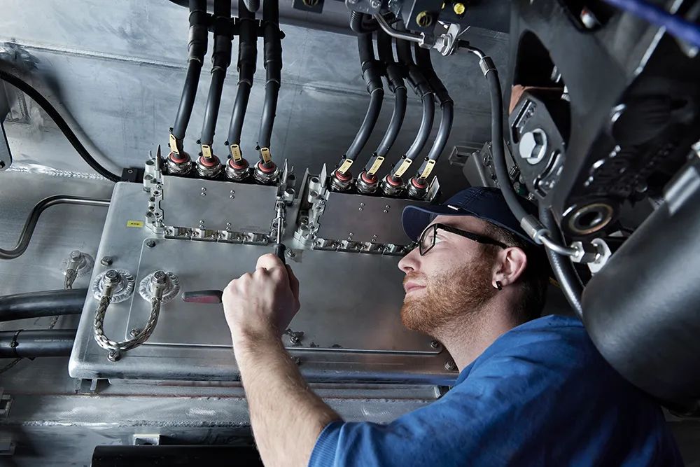 在與史陶比爾溝通后,針對車輛和轉向架傳動系統(tǒng)之間的連接方式,施泰德決定采用具備出色動力傳輸性能和結構緊湊的MPC方案,以替代此前的螺紋連接。在鐵路運營中,維護工作必須盡快完成,以盡量減少機車的停車時間。因此,可插拔連接是高效維護的理想方案。依據(jù)鐵路行業(yè)標準,所有部件即使在極端氣候條件下,也必須滿足耐用、大電流傳輸時的低能量損耗、抗振動和抗沖擊等技術要求。