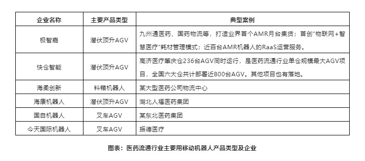 圖表:醫藥流通行業主要用移動機器人產品類型及企業