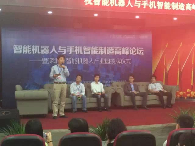 4月25日,由深圳市投資推廣署、深圳市科技創新委員會、深圳市龍華新區管理委員會主辦的,深圳市銀星投資集團、新戰略機器人全媒體承辦的“智能機器人與手機智能制造高峰論壇暨深圳市智能機器人產業園授牌儀式”在深圳市龍華新區科技企業孵化器隆重舉行。新區黨工委委員、管委會副主任胡曉清出席了論壇。此次會議參會企業超過400家,參會人員達到500多人,其中有近百家3C電子應用廠商,尤其是手機應用端,而機器人產業鏈企業也達到250家。