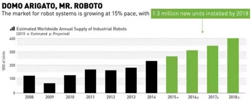 2015年到2018年全球將有130萬工業機器人投入市場