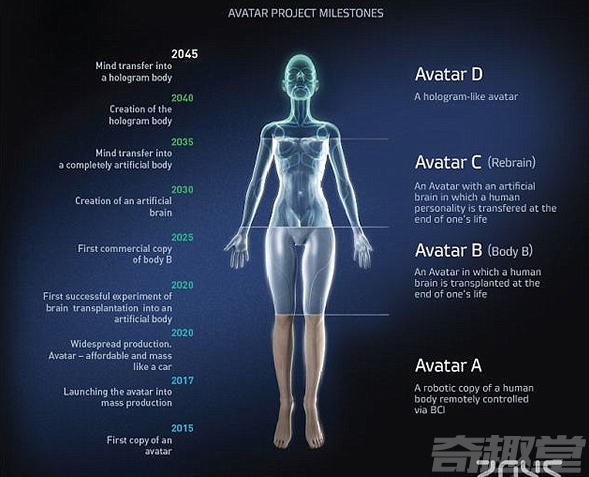 Itskov 表示,對死亡的恐懼讓我決定開始這項計劃,我的終極目標是把人的性格完完全全地轉移到一個新的身體里。該計劃也被稱作2045計劃,其研究年限為30年,計劃包括依照Itskov 的外貌制作全息圖。
