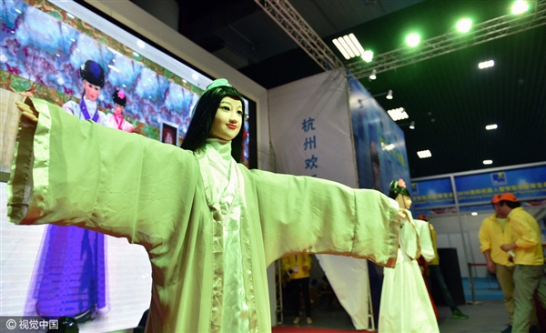 許仙是一款在展會上與白娘子和小青翩翩起舞的機器人,只是這造型,恐怕要讓觀眾捂眼睛了吧。