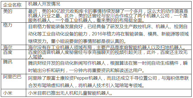 小伙伴們,咱們也別唏噓,且不看國際企業(yè),單看國內(nèi)有實力有資金的大企業(yè)也在紛紛介入機器人行業(yè)。