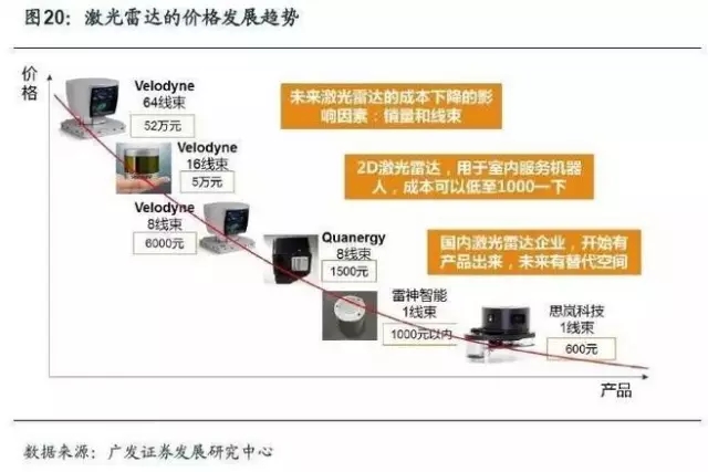 目前,全世界僅有日本、德國等少數幾個企業有能力生產激光雷達,但其價格都不低,百度、谷歌無人汽車采用的激光雷達,成本在2-8萬美元,價格幾乎與汽車本體相當,一般服務機器人很難承受如此昂貴的元器件。
