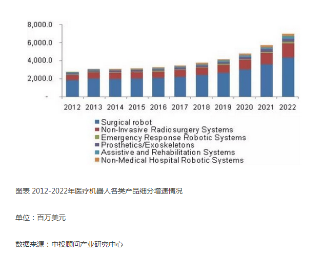 2016年4月,工信部、發改委、財政部等三部委聯合印發了《機器人產業發展規劃(2016-2020年)》,引導我國機器人產業快速健康可持續發展,增強技術創新能力和國際競爭能力,醫療機器人政策長期利好。同時由于政府醫療投入加大,醫療系統重組和人們對微創手術意識加強,未來醫療機器人市場重心將逐漸往亞洲市場轉移,中國醫療機器人發展前景可觀。