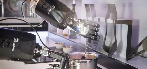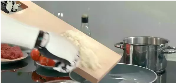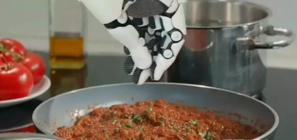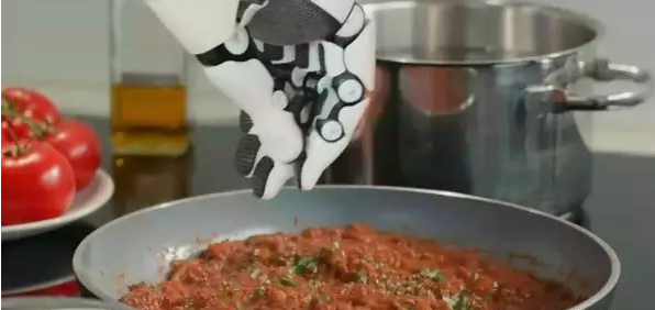 這臺擁有兩支類人類手臂的機器人,現在通過3D行動辨識手套,廚師可以教導機器人學習人類廚師的每一個動作,將餐點從無到有做出來.