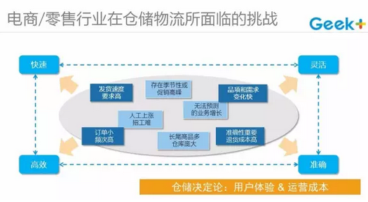 尤其是在電商、零售行業(yè)中,無(wú)論是來(lái)自外部還是內(nèi)部的挑戰(zhàn),都越發(fā)顯著。人口紅利下降和消費(fèi)側(cè)升級(jí)等宏觀環(huán)境所帶來(lái)的一系列問題,比如產(chǎn)品生命周期下降、SKU不斷增長(zhǎng)、長(zhǎng)尾化的庫(kù)存管理、節(jié)日大促的供應(yīng)壓力、物流倉(cāng)儲(chǔ)人工管理難、招工難等,都對(duì)電商、零售行業(yè)的物流倉(cāng)儲(chǔ)提出了嚴(yán)峻的考驗(yàn)。如何在物流供應(yīng)上做到反應(yīng)快速、柔性靈活、作業(yè)高效、履行準(zhǔn)確,往往決定了電商、零售行業(yè)公司的成敗。