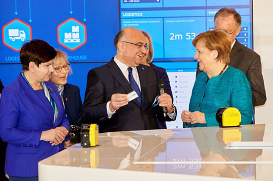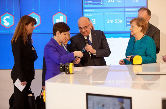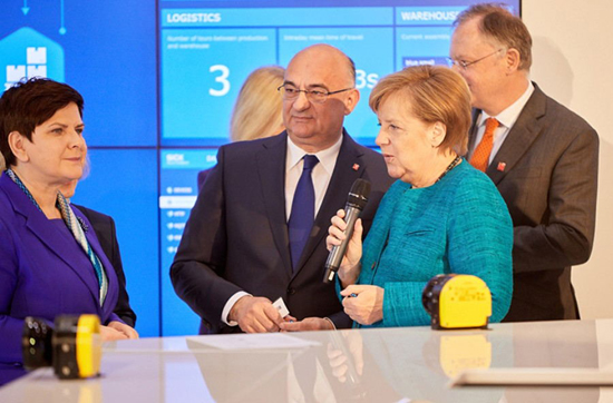 左二波蘭總理希德沃,右三SICK集團執(zhí)行董事長鮑爾博士,右一德國總理默克爾。