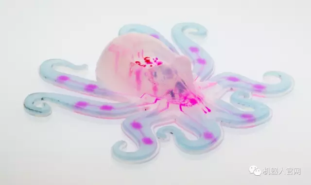 哈佛大學的研究人員發明的Octobot是第一個完全“自給自足”的全軟體機器人,它沒有電子硬件,也不需要連接在計算機上就可以移動。機器人內部嵌有電路,并以過氧化氫產生的化學反應為驅動力,外部材料由3D打印完成。