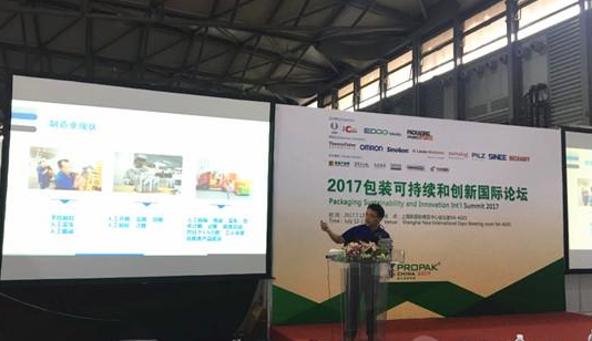 生產物流已成為智能制造的重要組成部分,深藍股份聚焦于包裝與物流生產的智能化發展。在ProPak 《2017包裝可持續和創新國際論壇》上山東深藍機器股份有限公司董事總經理欒子坤先生以《生產、物流融合發展趨勢與智能化解決方案》為主題發表演講,全面深入的分析了目前由生產到物流之間的銜接的痛點問題。欒子坤認為物流業的快速發展對生產線與倉促物流的配合提出更高的要求即“高速交接”,在這次特殊的接力賽中,生產與物流之間的“接力”直接決定了最終的生產效率。而深藍機器則是讓自動化延伸至生產與物流之間的“空白區域”,確保小包裝到大包裝的過度,并在這個過程中實現全部信息的采集、生成、存儲、提交,保證產品向物流公司的“快速、準確”交接!杜絕傳統制造業中人工碼垛、拖運、裝車、倉庫計數、記賬、低效勞動、工人辛苦且損害產品質量現象的出現。