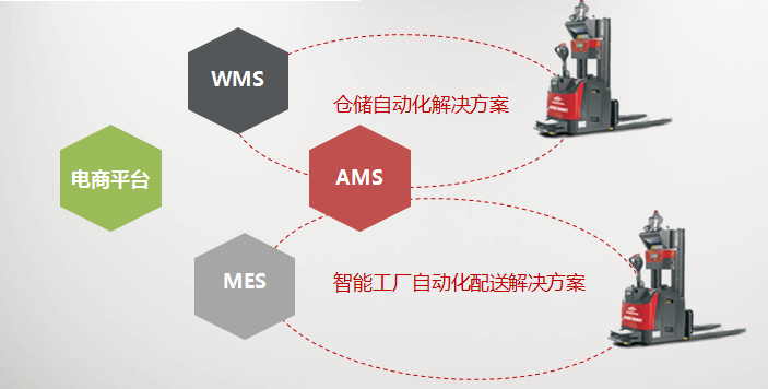 當前,智能物流的關鍵問題在于追求總體物流的平衡,而不僅僅是局部能力提升。因此,當生產(chǎn)車間的各種叉車、輸送線、提升機、堆垛機、機械手、AGV等硬件設備需要協(xié)同執(zhí)行任務時,AMS自動化管理系統(tǒng)就起到了關鍵作用。