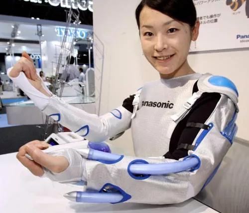 松下充氣式外骨骼在設計上用于幫助癱瘓患者。它的肘部和腕部裝有傳感器,允許手臂控制8塊人造肌肉。人造肌肉內裝有壓縮空氣,用于擠壓癱瘓部位。
