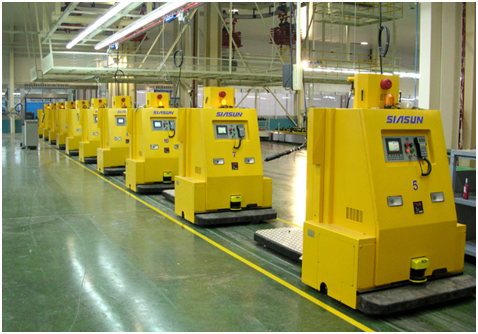 最后,是2007年,新松自主技術合裝AGV系統出口通用墨西哥工廠,為美國通用汽車全球工廠配套,實現了AGV產品走向國際市場,打破了移動機器人只有進口沒有出口的先河,同時也完成了分布式控制器的升級。隨后,世界知名車企,寶馬、日產、福特、路虎、SanDisk、AGCO紛紛采用新松AGV產品。新松AGV在汽車行業的市占率遙遙領先。