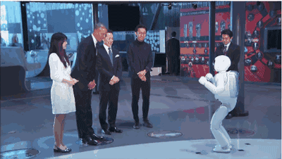 作為仿人機器人中曝光率最高的一個,ASIMO 機器人還與美奧巴馬互相鞠了躬,進行了親切會面交流~