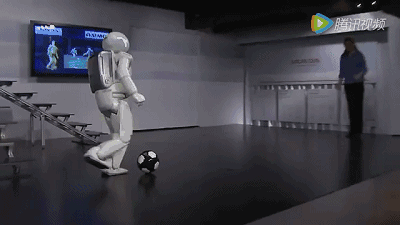 因其腿部各關節高度良好的協調性與平衡能力,使得 ASIMO 可以單腳站立踢足球。
