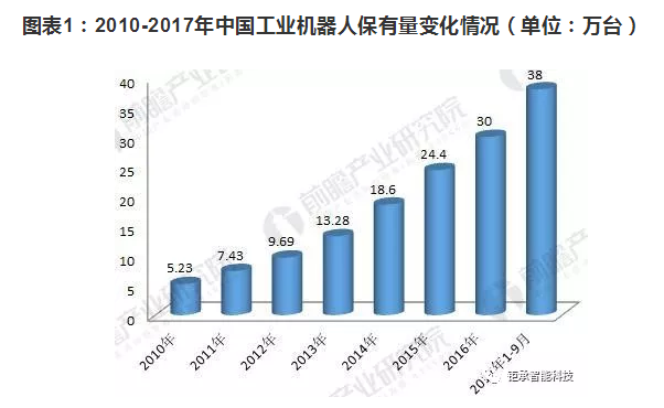 圖表1:2010-2017年中國工業機器人保有量變化情況(單位:萬臺)