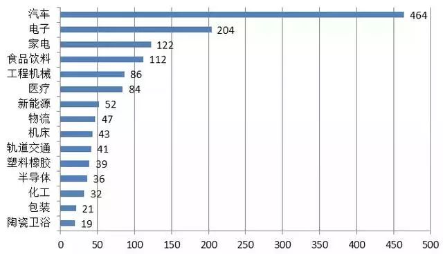 MIR對610家系統集成商中的541家進行了行業覆蓋分析,其中464家覆蓋汽車行業,占比85.8%;204家覆蓋電子行業,占比37.7%;122家覆蓋家電行業,占比26.6%;112家覆蓋食品飲料行業,占比20.7%。