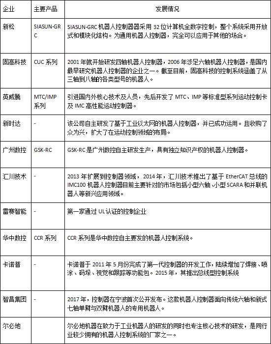 國產主要控制器企業一覽表
