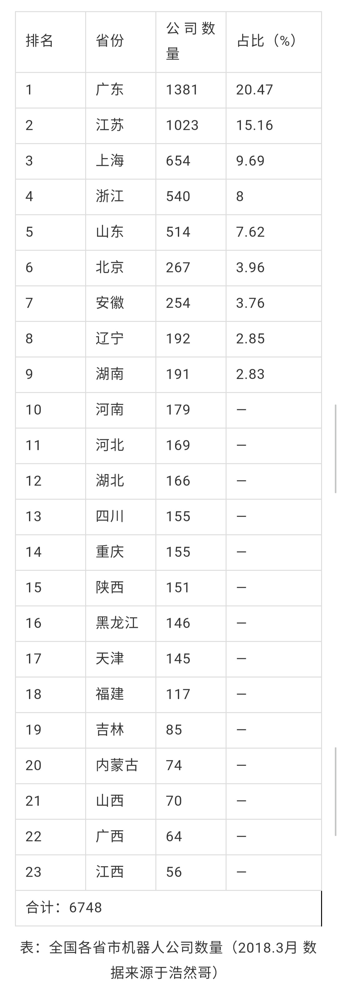廣東=1381,新增44家,占比=20.09%。