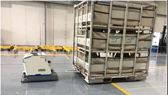 如圖所示,是深圳怡豐機器人所設計研發的自然導航AGV,應用于上汽大眾某廠區。上汽大眾某廠區,是一個負責生產汽車電池的生產基地。該廠區經常出現人機混用場景,并且對地面整潔度要求高,因此傳統二維碼導航AGV應用就受到了限制。而怡豐機器人所設計研發的這款AGV,只需要靠場景中的物體即可實現AGV定位,無須放置標志性物體,維護成本低、可靠性高、廠區環境整潔,解決了二維碼導航所遇到的問題,該項目也成為了上汽大眾的標志性項目。