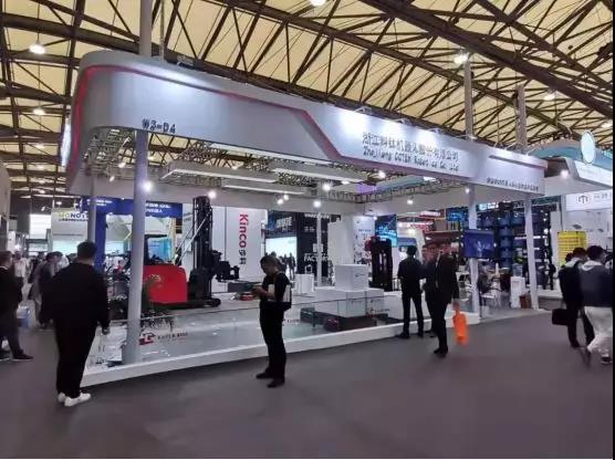 在2019 CeMAT展會現場,科鈦新一代IGV車載控制器SmartGO全新亮相,智能大腦協同多種類型的IGV工作。包括2臺輥道移載式IGV,1臺激光SLAM頂升IGV,1臺二維碼頂升IGV,1臺堆高車。