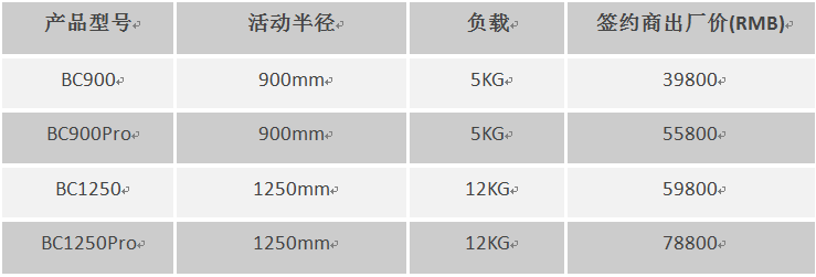 爾必地協作機器人的機型及定價(注:以上產品只針對簽約商銷售。)