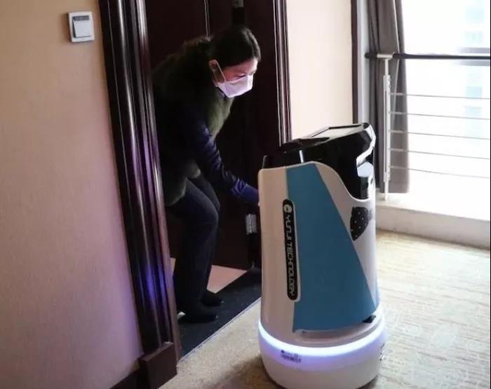 由于眾多疑似病例暫時不能確診,住在醫院中不但有感染風險,也會耽誤其他病人的治療,所以很多與疑似患者接觸過的人員都被安排在了酒店進行自主隔離。這時,這些酒店機器人就迎來了它們新的使命,雖然同樣是承擔送物的工作,但意義是完全不同的。它們不僅是為顧客送去所需物品,也在為他們的生命負責,減少了交叉感染的可能。