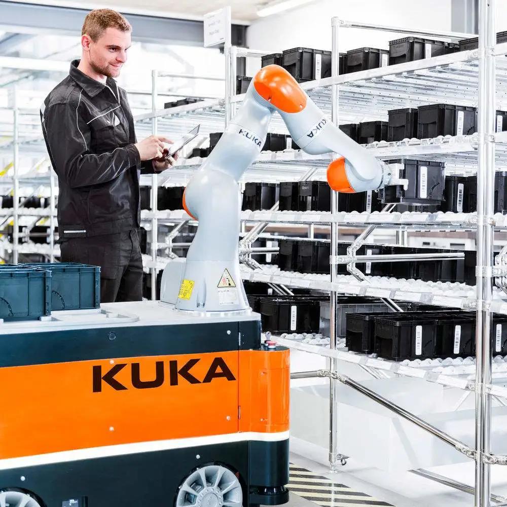 當自主移動平臺與多軸關節(jié)臂集成在一起,做成移動機械手,移動式協(xié)作機器人(也有種說法叫復合型機器人),有手有腳,甚至有的還會有眼睛,幫助人類勞動已不是夢。庫卡的KMR iiwa、史陶比爾的HelMo移動機器人系統(tǒng)、新松的HSCR5復合機器人等等。在3C電子、醫(yī)療、日化品、機加工等傳統(tǒng)制造業(yè)的零部件組裝環(huán)節(jié),復合型機器人可發(fā)揮出巨大功效。