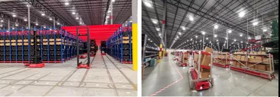 國自為其打造的智能化倉儲揀選方案中,對爆款商品和慢銷商品的進行分區存儲,并采用高貨架倉儲模式,大幅提高倉庫利用率。項目中采用PICKING實現對更細顆粒的搬運,減少重復搬運,配合人機結合的揀選方式,最大限度提高整體工作效率。從2017年以來,在該終端的倉庫中,國自已經完成超過1000臺機器人的上線作業,節省了大量的勞動力和傳統設備成本。